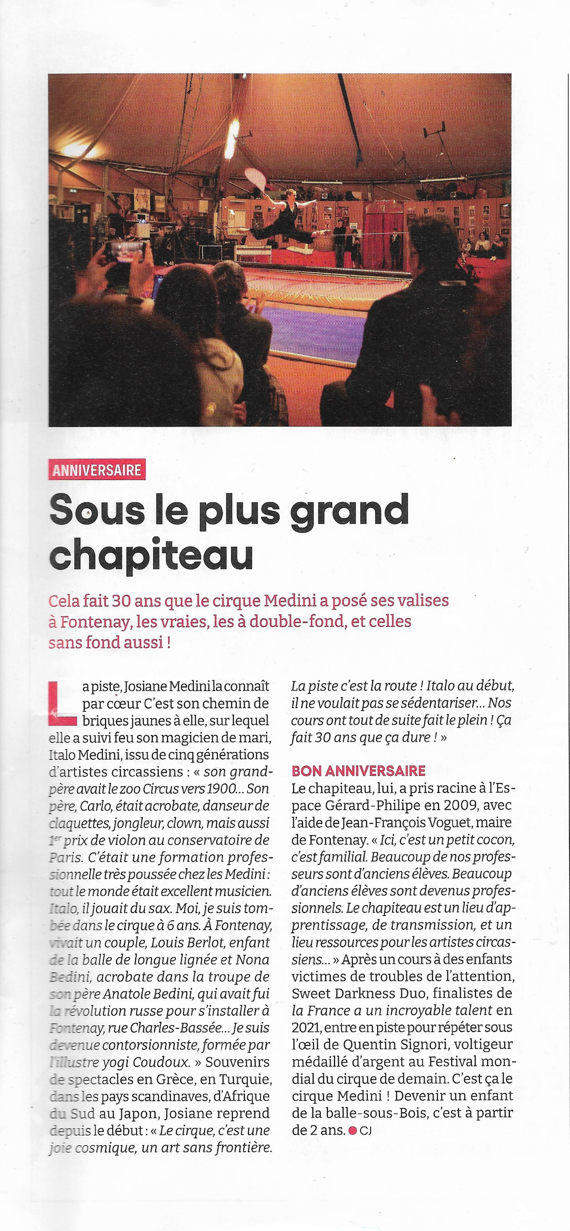 « Pour les gens du cirque, devenir « sédentaire », renoncer aux voyages bouleverse la vision de la vie. Mais voilà, nous avons rencontré des femmes et des hommes qui ont cru en nous. Grâce à eux, l’Ecole de Cirque Italo Medini a 30 ans.